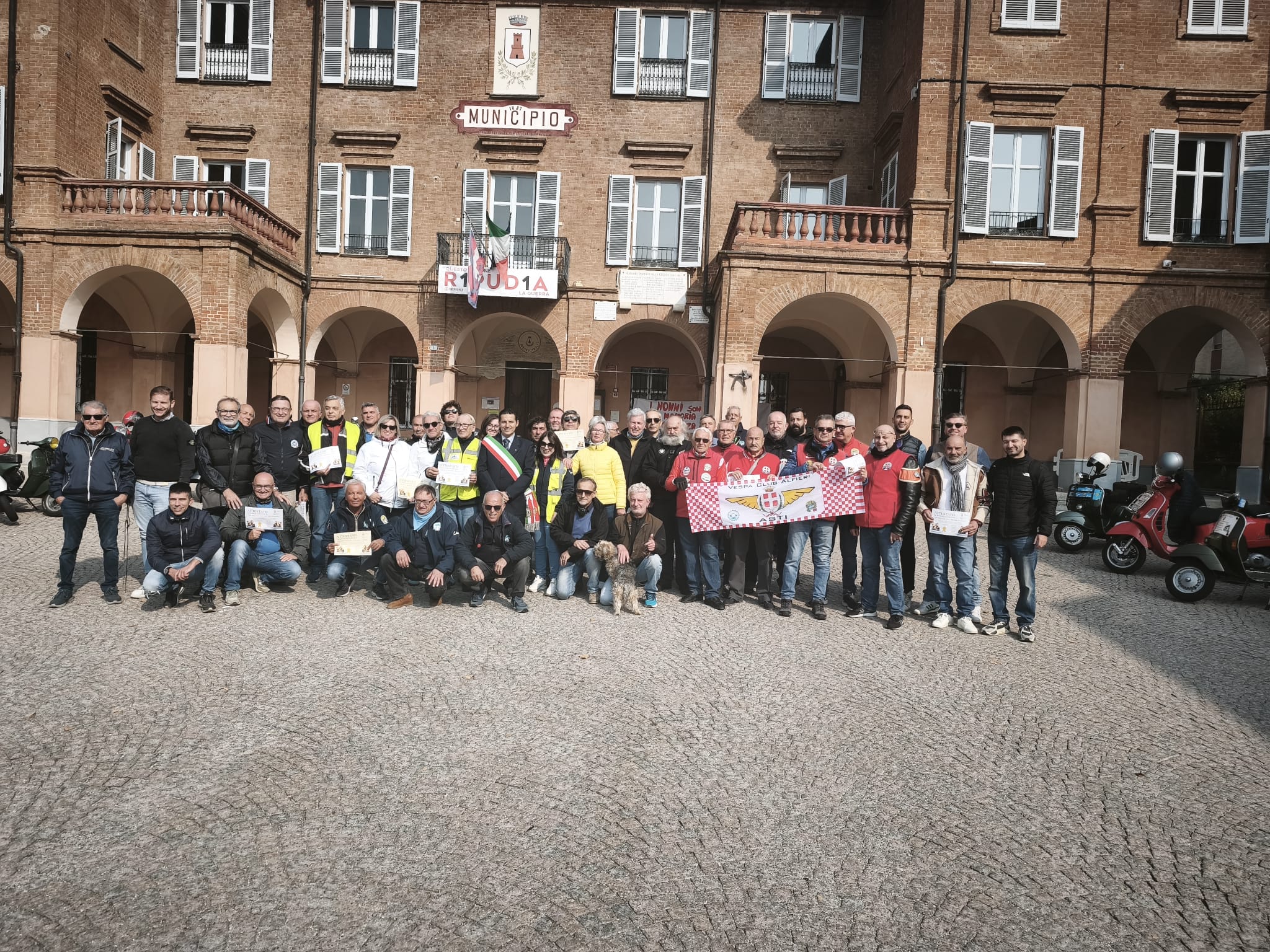 In piazza Municipio abbiamo avuto il piacere di consegnare gli attestati di ringraziamento a oltre 50 vespisti che hanno fatto tappa nel nostro paese durante il 1° Raduno in Vespa, organizzato dal Comitato amici della Piazza di Incisa Scapaccino.